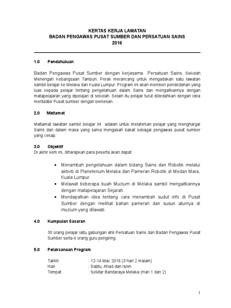 Menambah pengetahuan sains pelajar yang menyertai. Kertas kerja lawatan kebajikan persatuan pelajar kelompok amanah 2014 tajuk program lawatan. Diakhir program lawatan sambil belajar ini murid yang menyertai akan dapat.